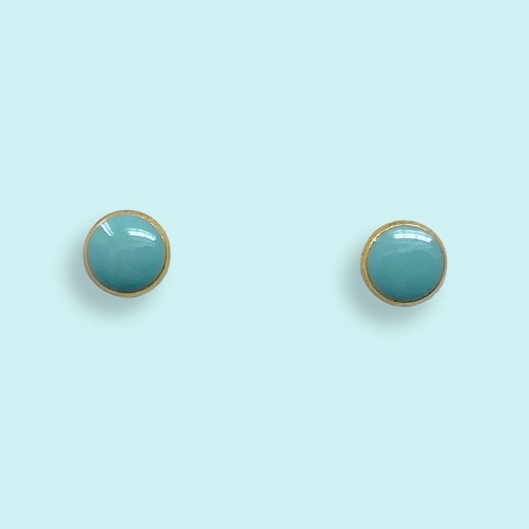 Aqua dot studs. Metal: 24kt gold plating over brass Size .25" W Stainless steel posts Made in the US