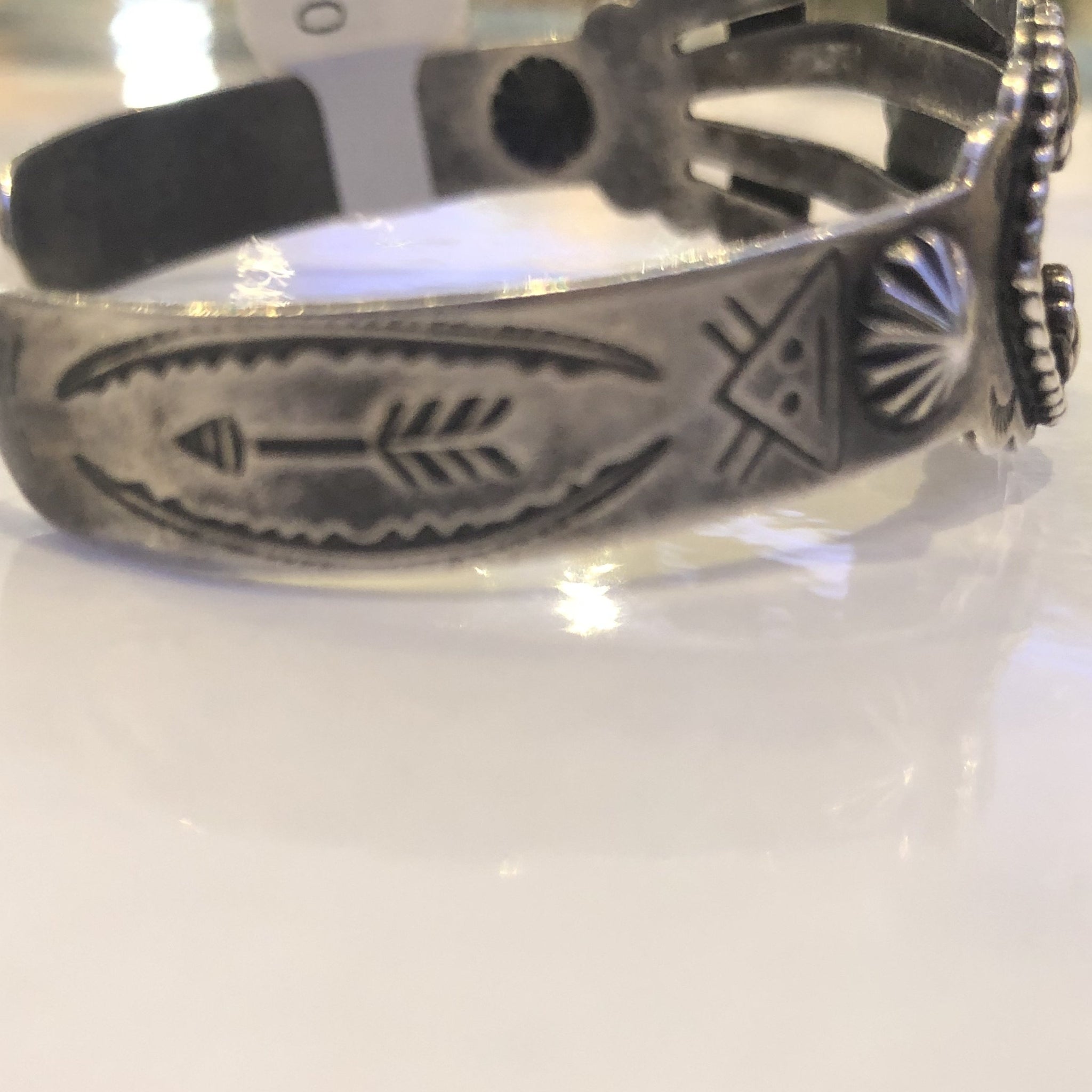 Wear and Tear - Authentic Old Pawn jewelry will have a natural gray patina, indicating age. It takes decades for the patina to develop and may appear grayer in dry climates like the southwest. Humidity will add a darker, blacker patina. Patina typically isn’t buffed off in order to preserve its history and value. Made of Sterling Silver