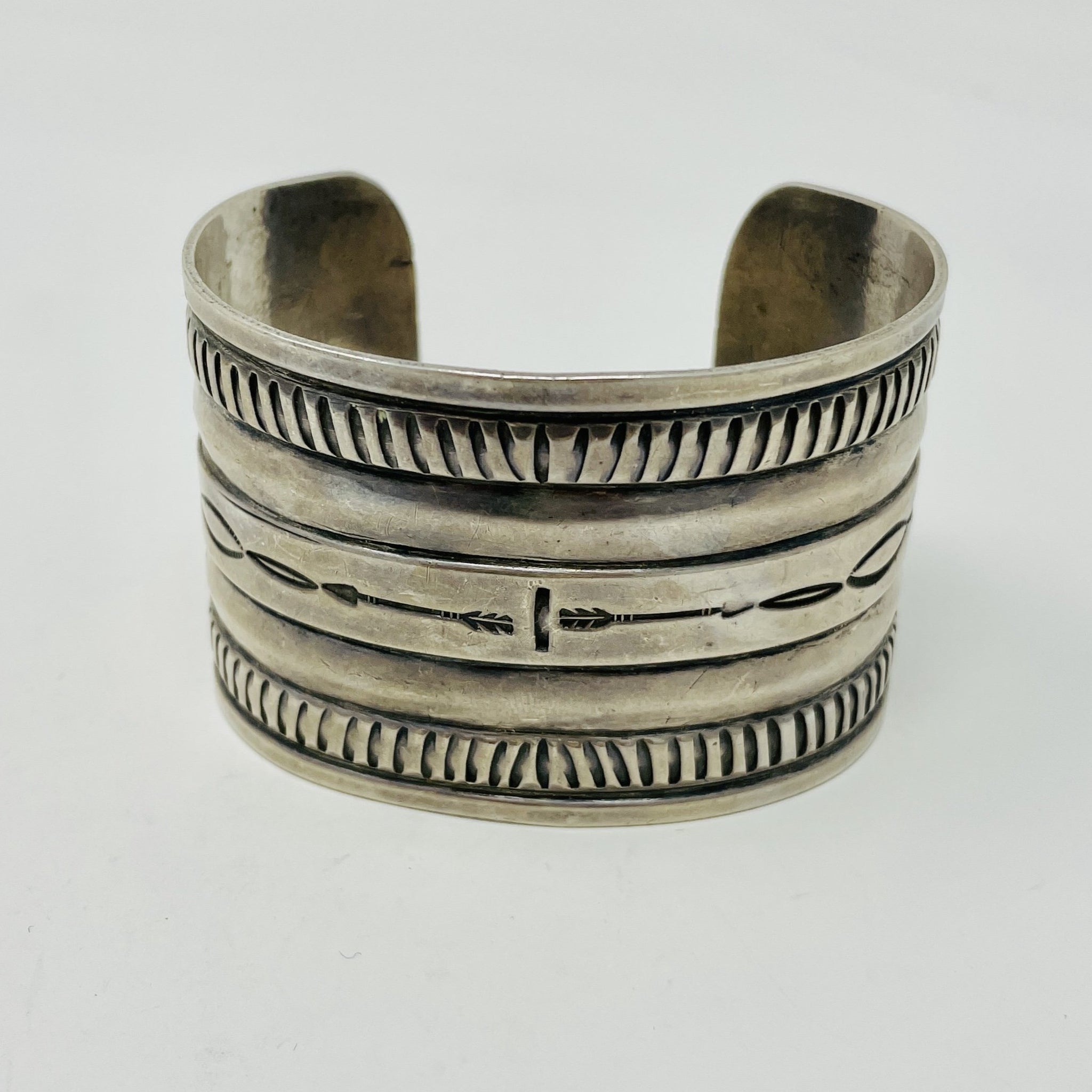 Navajo Sterling Silver Cuff with Domed Rows and Hand Stamping