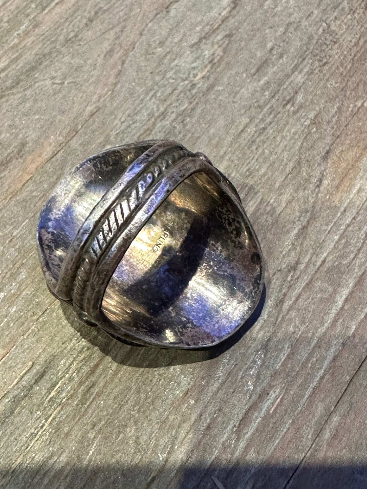 Authentic Old Pawn jewelry will have a natural gray patina, indicating age. It takes decades for the patina to develop and may appear grayer in dry climates like the southwest. Humidity will add a darker, blacker patina. Patina typically isn’t buffed off in order to preserve its history and value. Made of Sterling Silver