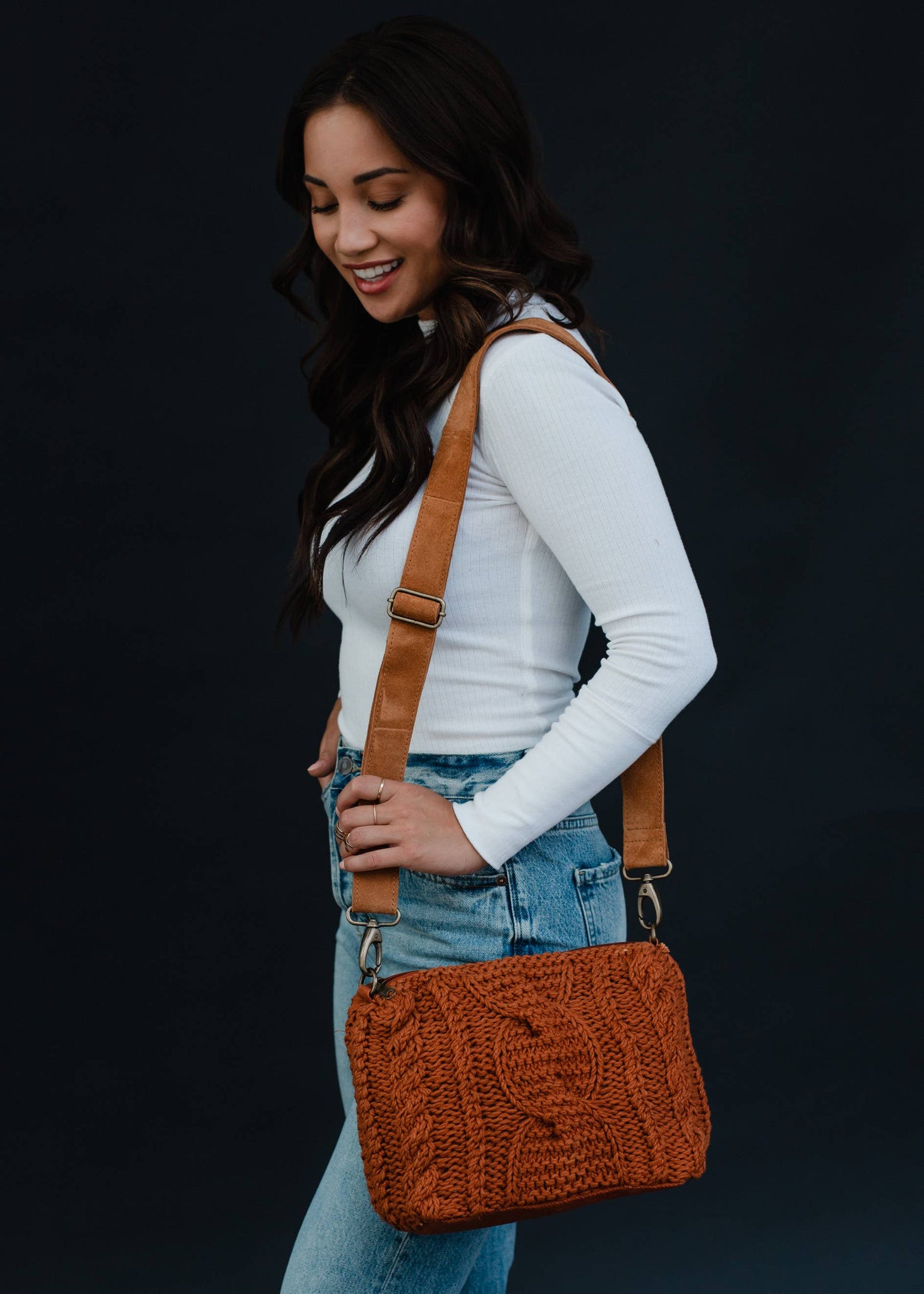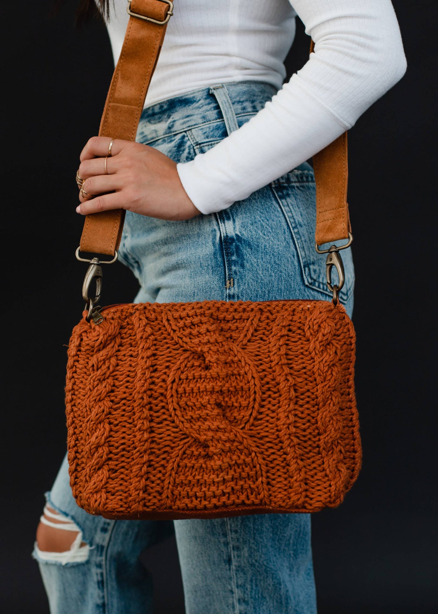 Rust Cable Knit Crossbody