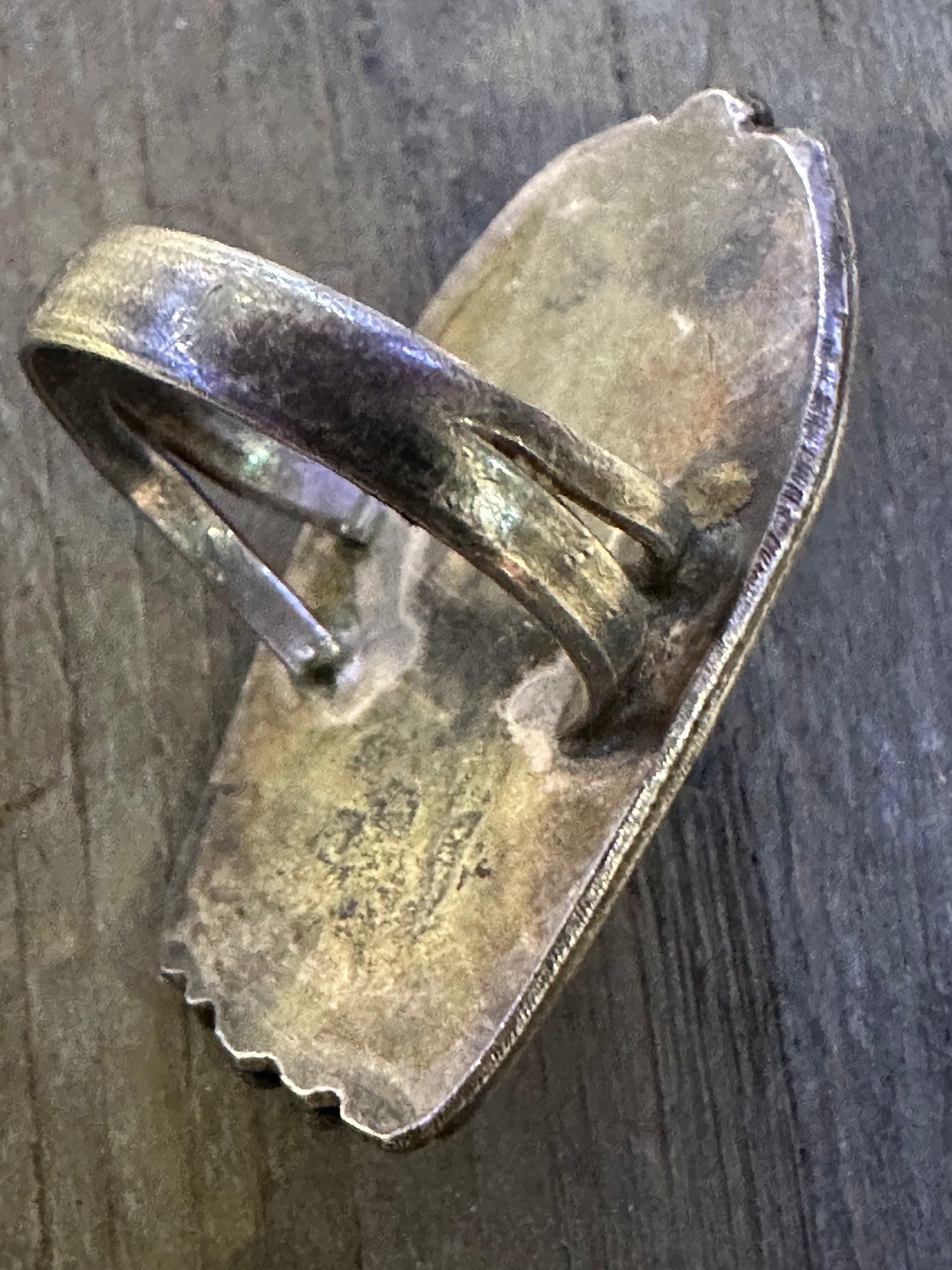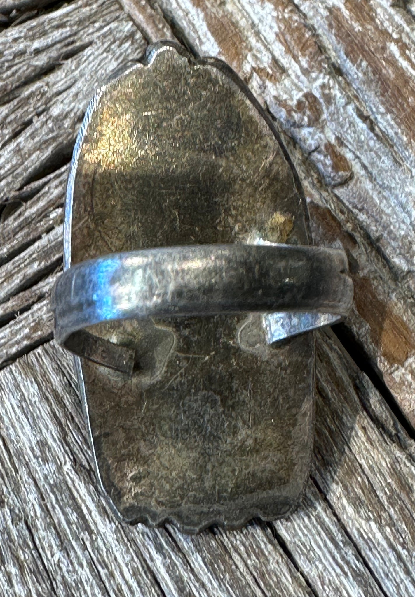 Authentic Old Pawn jewelry will have a natural gray patina, indicating age. It takes decades for the patina to develop and may appear grayer in dry climates like the southwest. Humidity will add a darker, blacker patina. Patina typically isn’t buffed off in order to preserve its history and value. Made of Sterling Silver