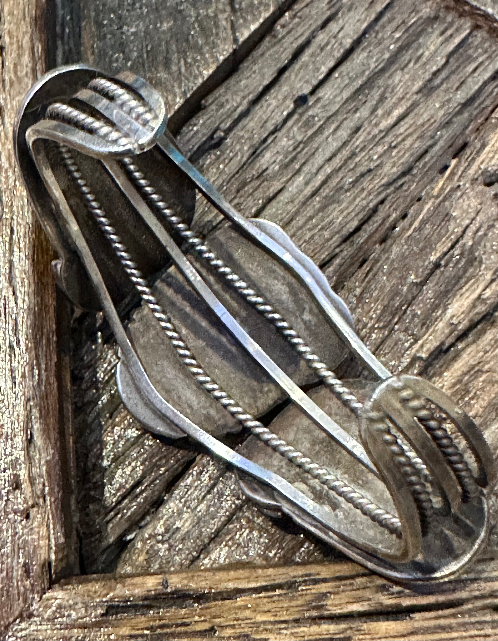 Authentic Old Pawn jewelry will have a natural gray patina, indicating age. It takes decades for the patina to develop and may appear grayer in dry climates like the southwest. Humidity will add a darker, blacker patina. Patina typically isn’t buffed off in order to preserve its history and value. Made of Sterling Silver