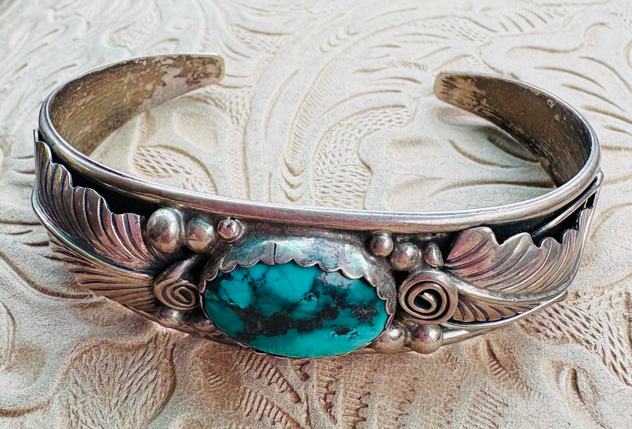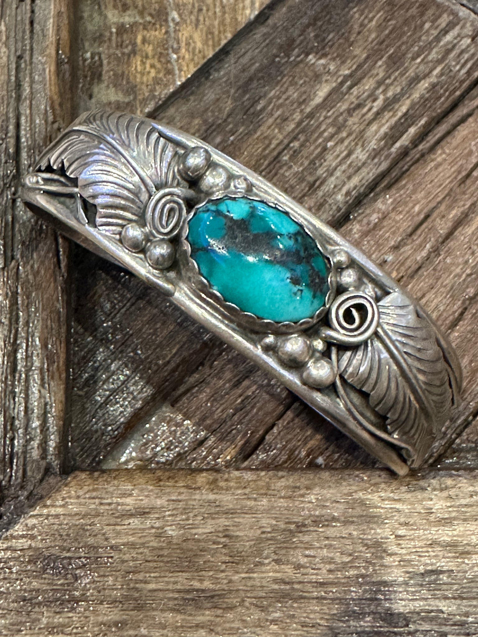 Authentic Old Pawn jewelry will have a natural gray patina, indicating age. It takes decades for the patina to develop and may appear grayer in dry climates like the southwest. Humidity will add a darker, blacker patina. Patina typically isn’t buffed off in order to preserve its history and value. Made of Sterling Silver